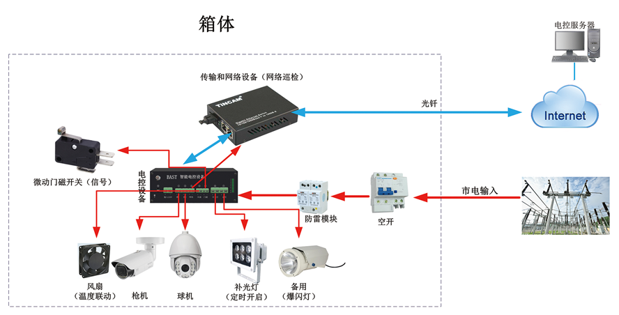 本方案基于贝瑞BESP-B系列及物联电控平台3.0搭建。方案是BESP-A的加强版,除具有BESP-D和BESP-A功能外,本方案加强了电路保护线路,加大了输入、输出功率。输入功率容量提升到10000W,输出端口高达6000W,主要针对大功率设备管理,BESP-B系列主要分BESP-B-A(强电-220V)、BESP-B-B(混合-12V/24V/220V)两款,适合各种用户需求。前端电控设备采用隔板安装,适合大功率远程环境应用。